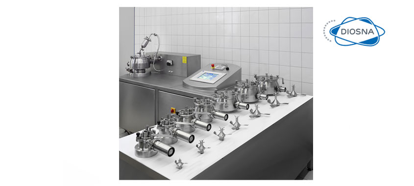 You benefit from highly efficient DIOSNA vessels with cylindrical-conical design that effectively map the mixing and moist granulation processes. With the cylindrical vacuum container with a capacity of up to 10 litres, you can also meet the special requirements of drying processes. The chopper tool, which is driven from above, can be used for this purpose. The integrated peristaltic pump makes it very easy to feed the product.